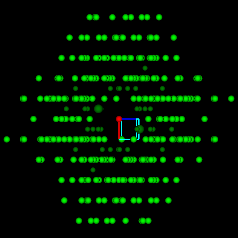 On the other hand, when inspecting the lattice a little more closely, it is often desirable not only to be able to rotate freely, but also to be able to create specific projections of the lattice or the diffraction signal. To this end, different options are available.